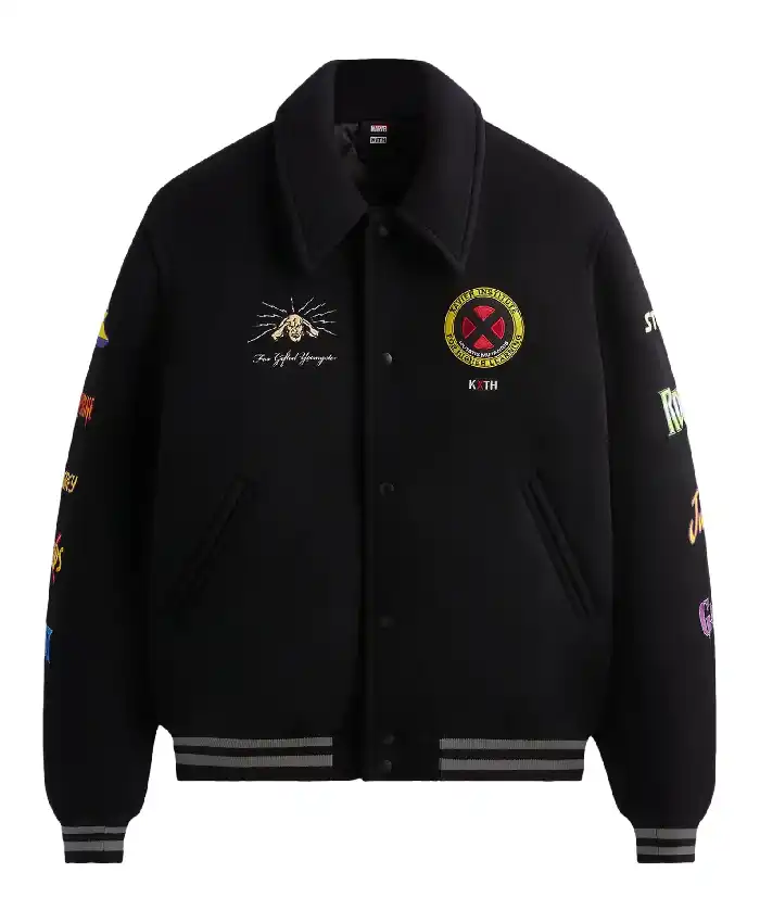 Kith X Marvel X-Men Wool Black Varsity Jacket For Men and Women