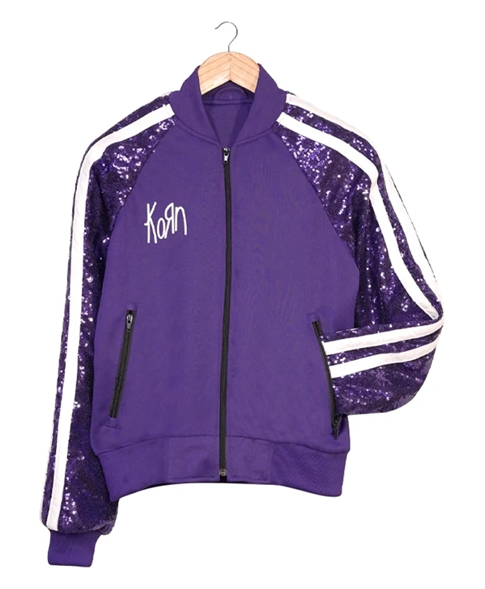 This Korn Adidas Purple Tracksuit is boldly designed to be sported, given both the quality of the design and the comfort level that each fan would be proud of. Made from fleece and sequin material, you will be warm and very attractive.