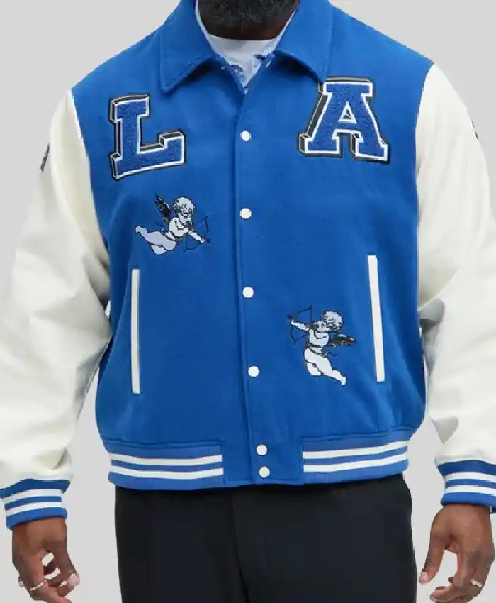 Koyin Fashion Nova Wool Blue and White Varsity Jacket On Sale For Men and Women
