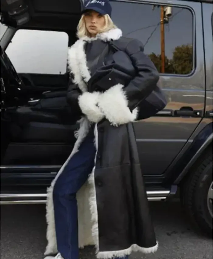 Buy the Luxurious Elsa Hosk Black Shearling Coat Now!