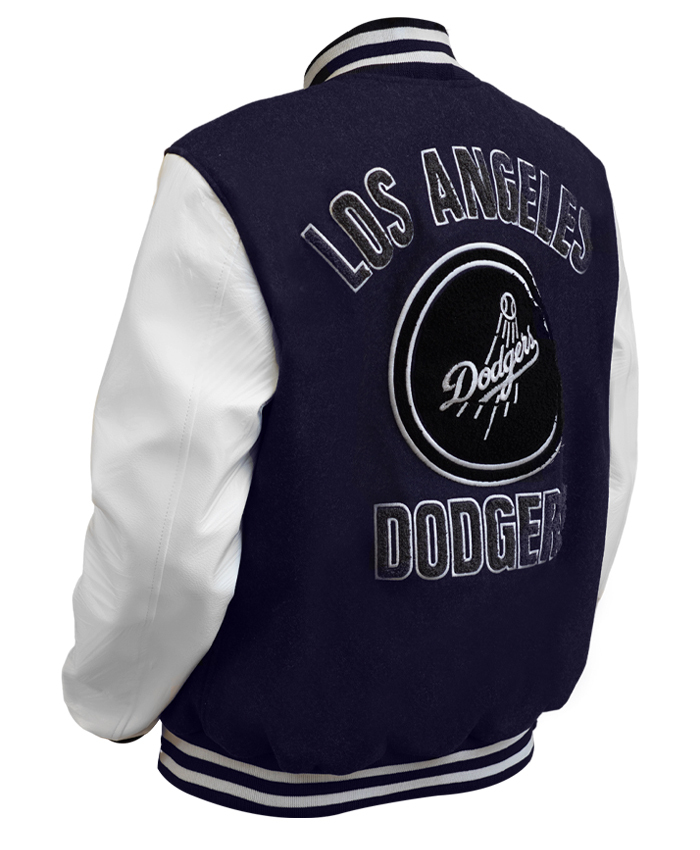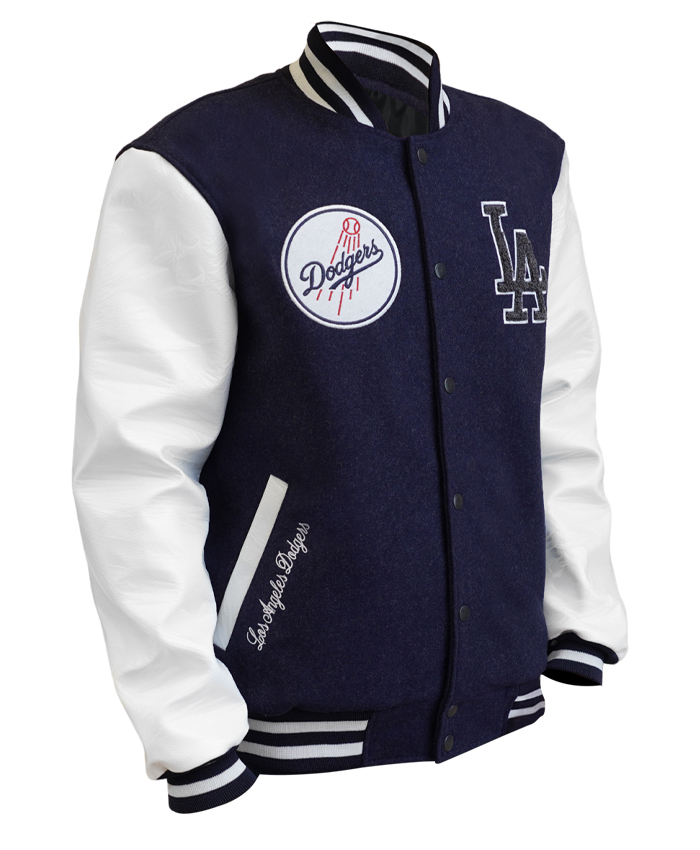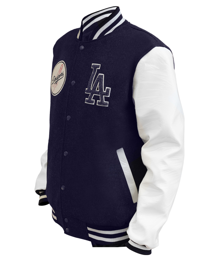 LA Dodgers Baseball Navy and White Wool Varsity Jacket For Men and Women On Sale