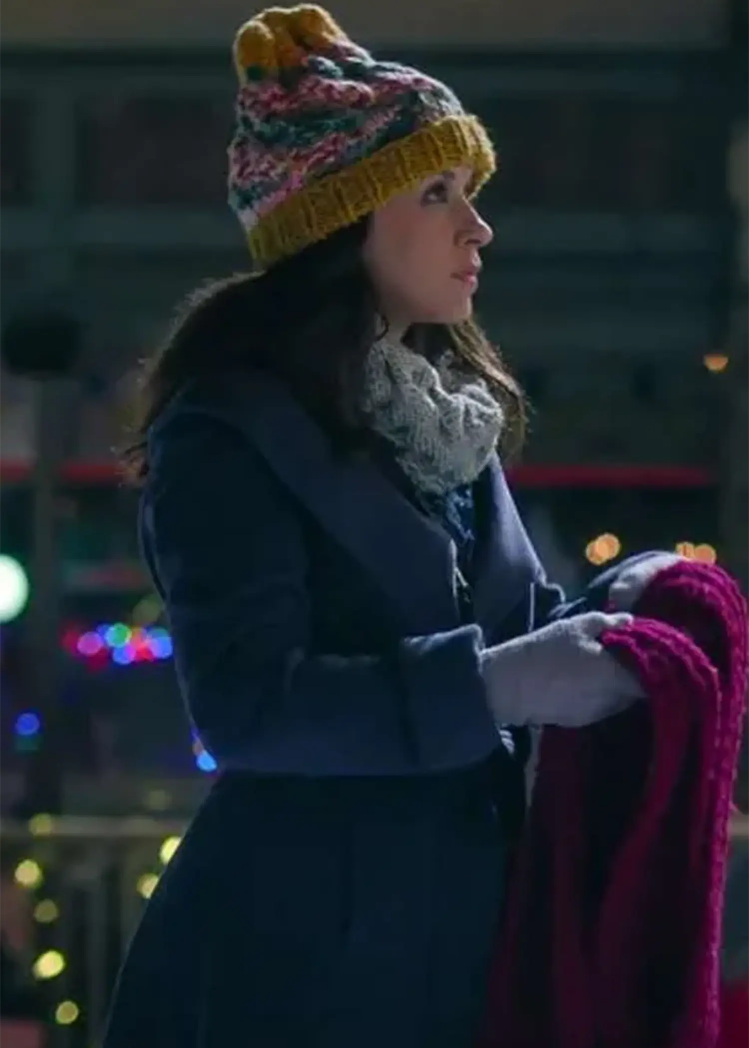 Kathy Barrett Movie Hot Frosty 2024 Lacey Chabert Blue Wool Coat For Women