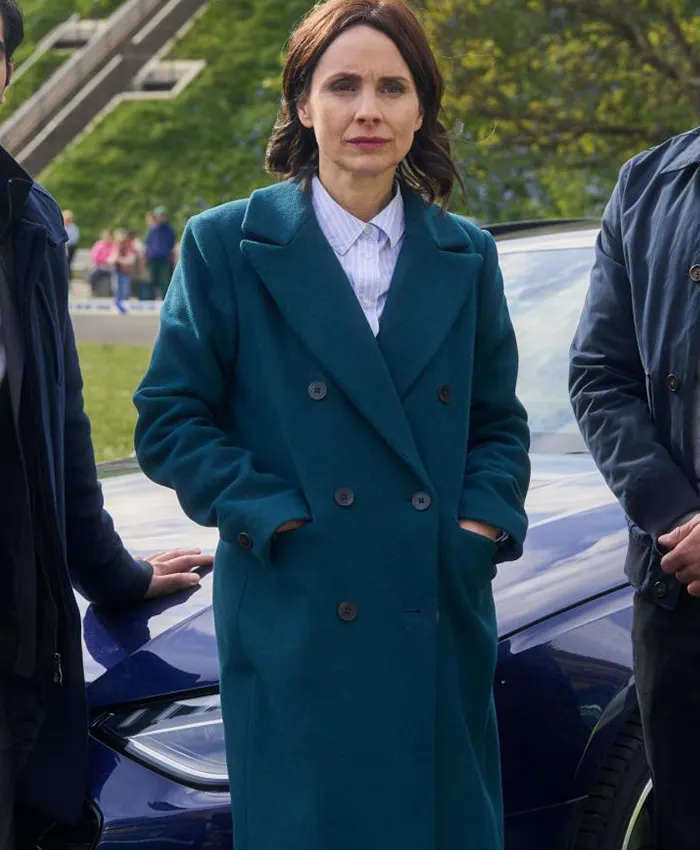 DI Bea Metcalf TV Series Patience 2025 Laura Fraser Blue Wool Coat