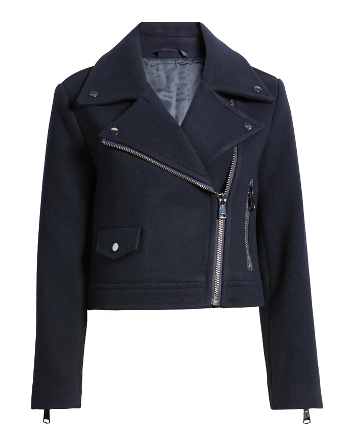 Kelli Giddish TV-Series Law and Order SVU 2025 Amanda Rollins Blue Wool Biker Jacket