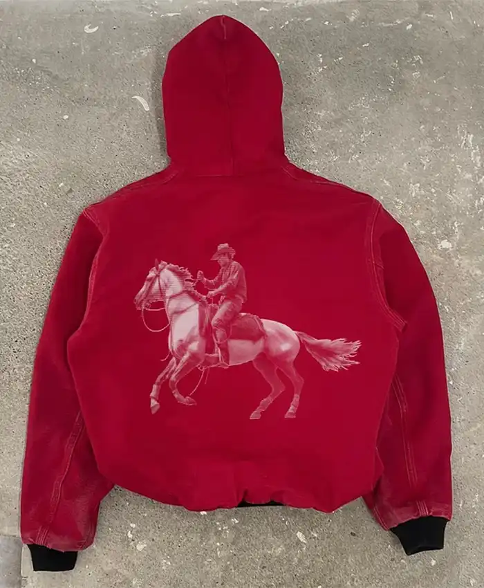 Buy Letters Printed Long Sleeve Zip-up Red Hooded Jacket For Sale