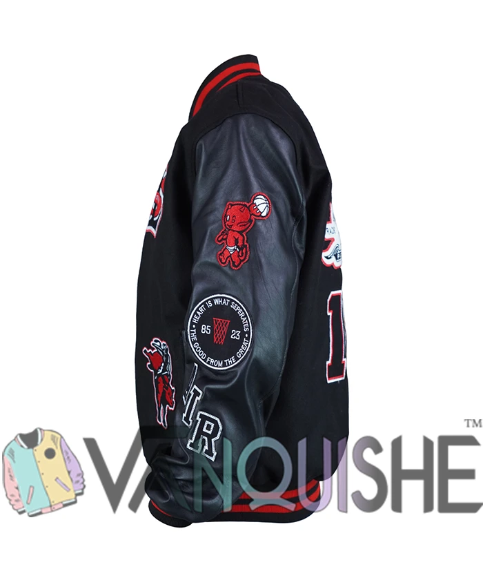 The wool jacket has leather cuffs and intricate stitching that make it feel rich and high-end as soon as you put it on. It’s rough, has a strong structure, and has a finish that makes you want to collect it. A smooth viscose lining on the inside makes things soft, so you can wear it all day without feeling heavy. The ribbed collar and arms give it that standard varsity look that everyone loves. The long sleeves keep you warm and even out your body.
