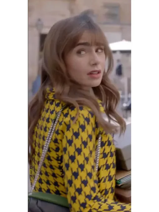 Emily Cooper Tv Series Emily in Paris Season 3 Lily Collins Yellow and Black Plaid Tweed Blazer