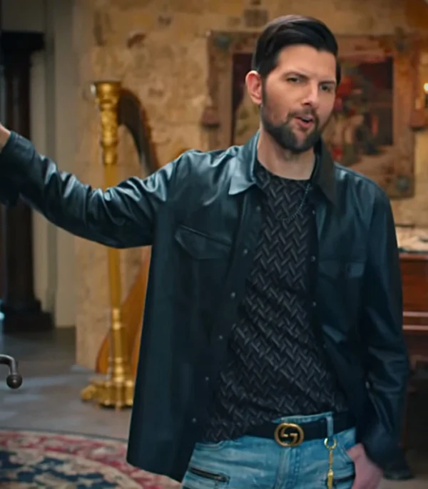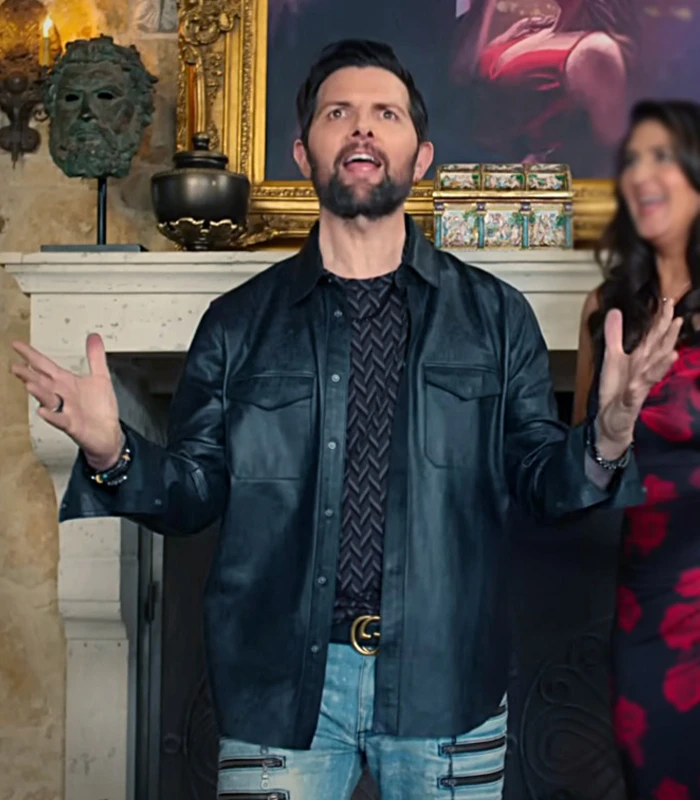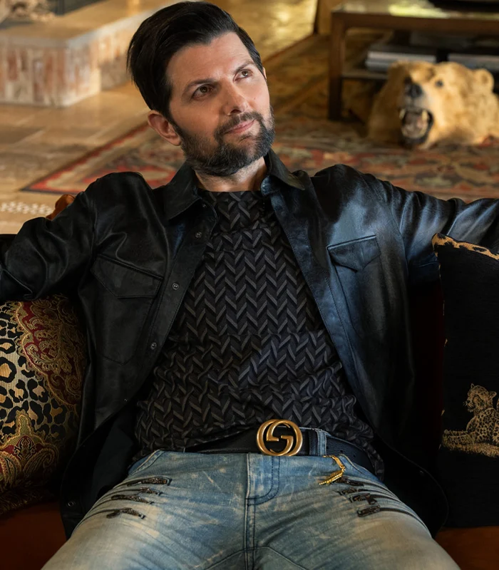 Adam Scott TV-Series Loot 2025 John Novak Black Leather Shirt