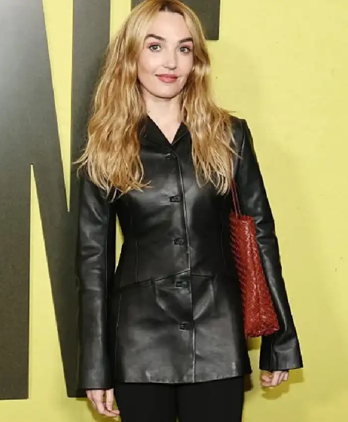 Chloe Fineman Focus Features Lorne Premiere Black Leather Blazer Jacket For Women