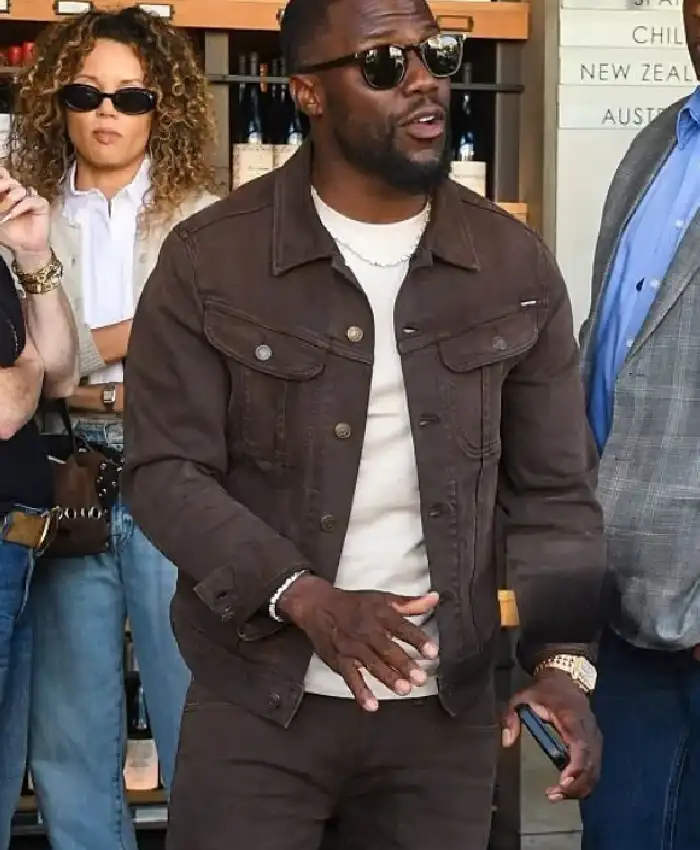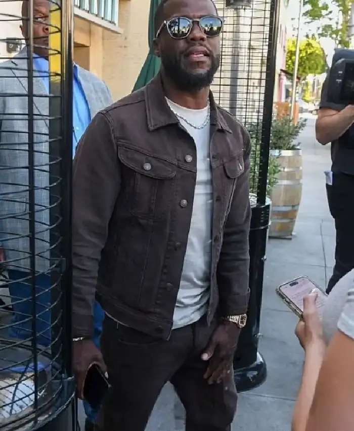 Shop Kevin Hart Los Angeles 2026 Chocolate Brown Trucker Denim Jacket For Men and Women
