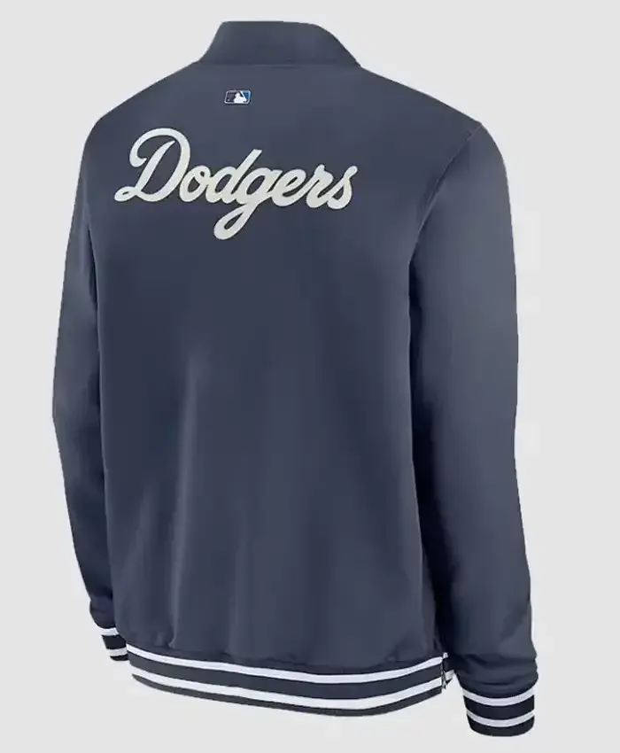 The jacket can be teamed up with jeans, joggers, or chinos for a neat outfit that reflects fan spirit. You can also put it on a t-shirt or hoodie to stay warm and look stylish, and then wear sneakers or casual boots to finish off the outfit. The jacket’s modern style and its basic navy blue shade give the fans the opportunity to flaunt their Dodgers pride without leaving the comfort of everyday wear—it is also excellent for game days, city walks or casual get-togethers.
