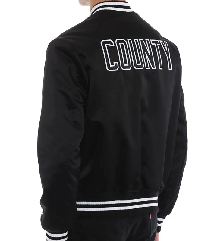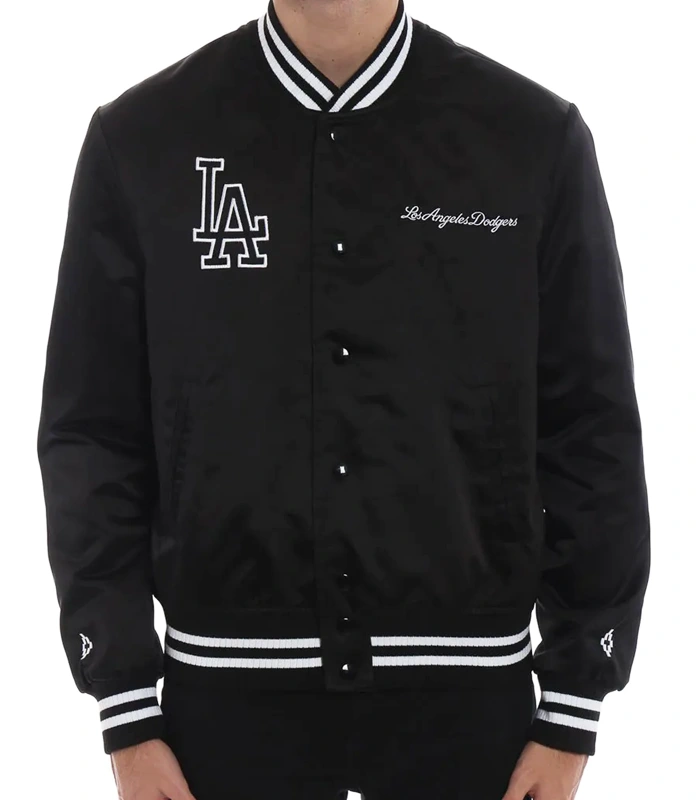 Men’s Los Angeles Dodgers County Black Satin Bomber Jacket For Sale