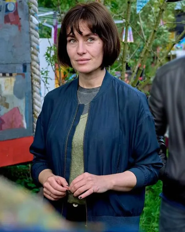 Maimie McCoy TV Series Van der Valk Lucienne Hassell Blue Bomber Jacket