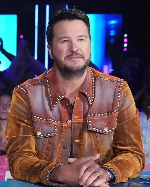 Luke Bryan, a renowned American country music singer and songwriter, was seen wearing a stylish brown leather jacket on American Idol, which caught a lot of attention from fans and celebrities. The jacket has a rugged yet refined layout, with a slightly weathered leather finish that adds to its appeal.