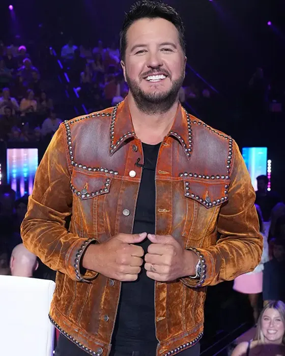 Luke Bryan American Idol Brown Studded Leather Jacket