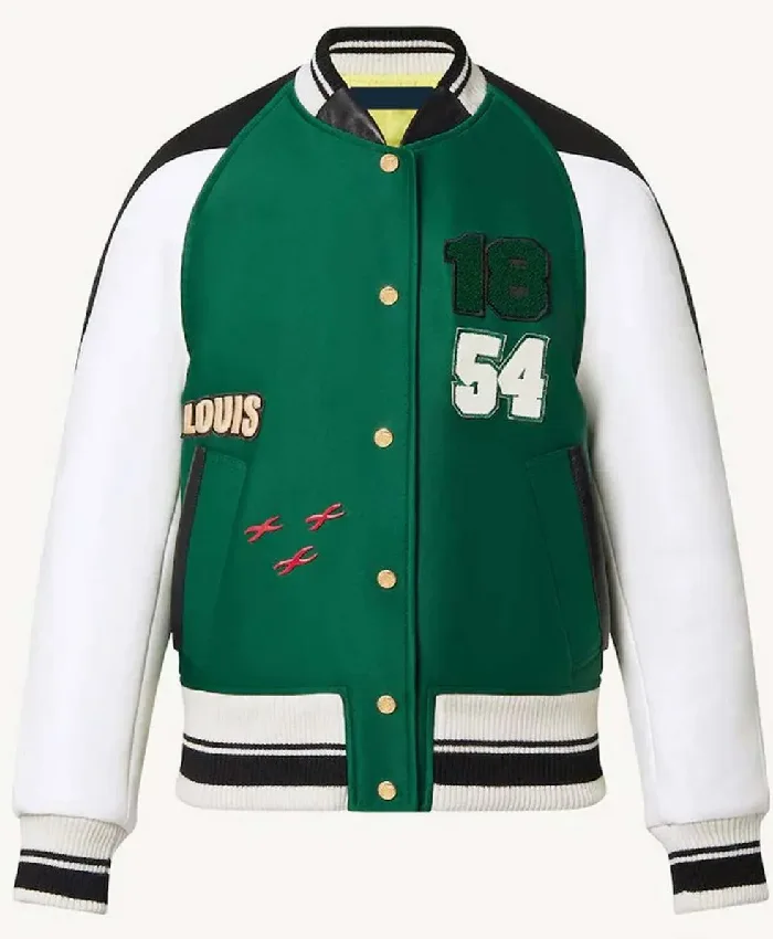 LV Dawn Staley Letterman Patch Wool Green Varsity Jacket For Men and Women