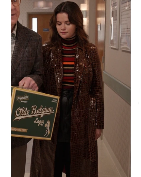 Selena Gomez Only Murders in the Building S04 Mabel Mora Brown Crocodile Leather Trench Coat