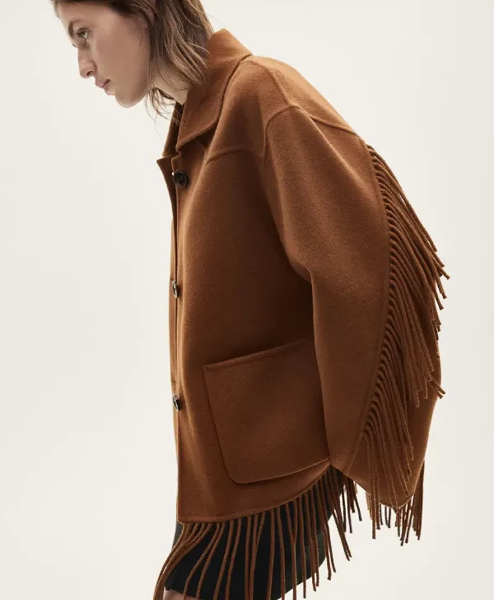 Shop Women’s Mango Fringe Brown Wool Jacket