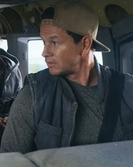 Mark Wahlberg Movie Flight Risk 2024 Blue Vest