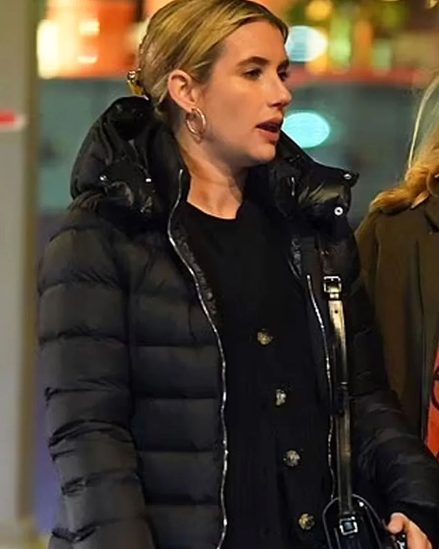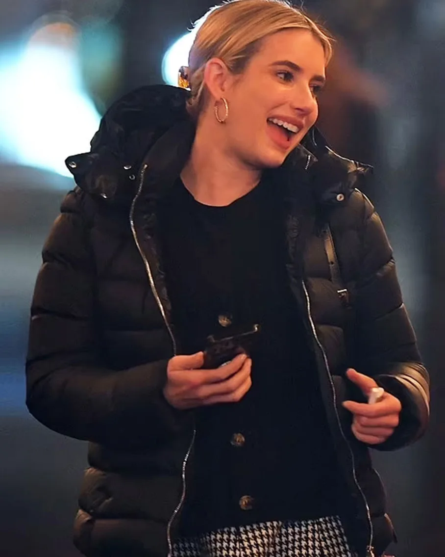Emma Roberts Movie Madame Web Mary Parker Black Hooded Parachute Puffer Jacket