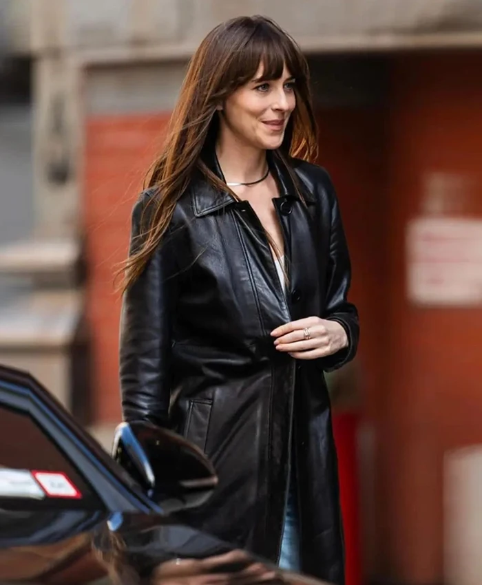 Dakota Johnson has been wowing audiences with her versatility for years, and now she’s stepping up her game even more. After showcasing her talent in the superhero flick Madame Web, she’s gearing up for another romantic comedy, Materialists. While the movie hasn’t hit the screens yet, fans are already buzzing about the star-studded cast, intriguing plot, and—of course—Dakota’s effortlessly chic fashion choices. Enter the Materialists Dakota Johnson Black Long Leather Jacket, a timeless statement piece that’s ready to elevate any wardrobe.