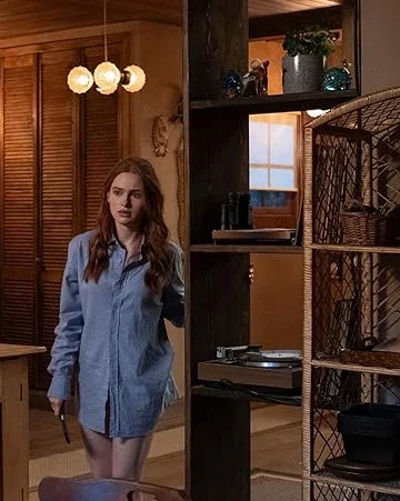 Madelaine Petsch The Strangers: Chapter 1 Movie 2024 Maya Blue Cotton Shirt