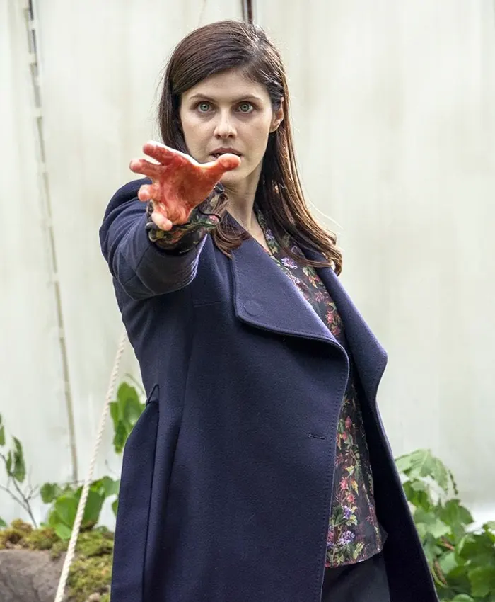 Alexandra Daddario TV-Series Mayfair Witches 2025 Rowan Fielding Blue Wool Coat