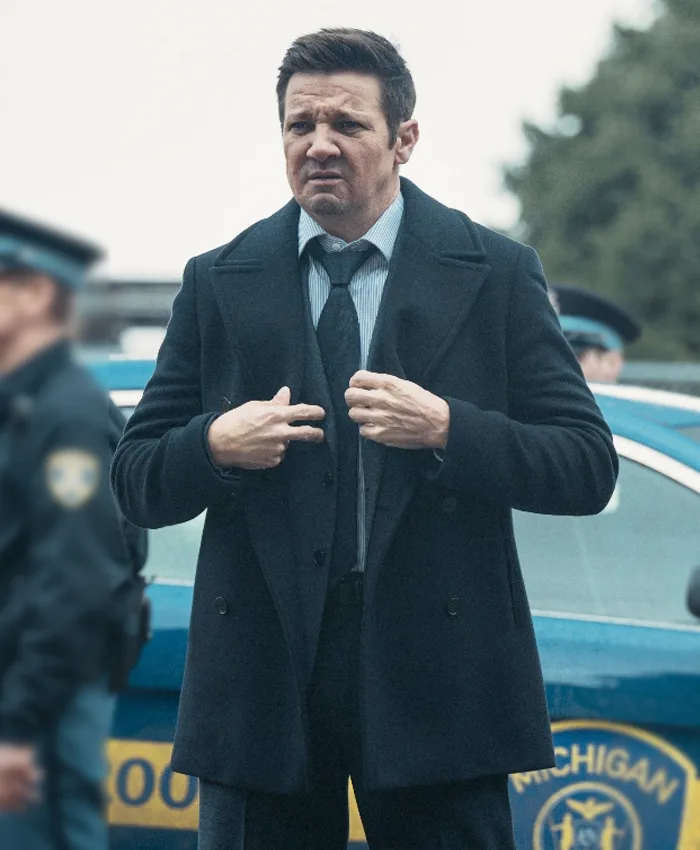 Jeremy Renner TV-Series Mayor of Kingstown 2025 Mike McLusky Blue Wool Coat