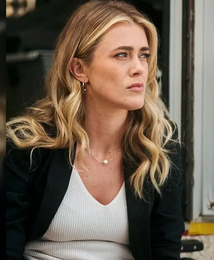 In The Hunting Party, Melissa Roxburgh doesn’t just chase down leads — she hunts the truth with sharp instincts, fierce determination, and a wardrobe that means business. Her sleek black blazer isn’t just fashion — it’s a signal. She’s the kind of woman who walks into a room and owns it, no need to announce herself. The outfit does it for her.