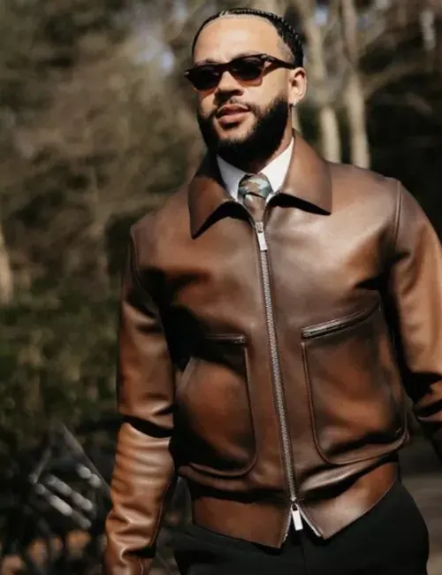 Dutch footballer Memphis Depay Brown Leather Jacket For Men