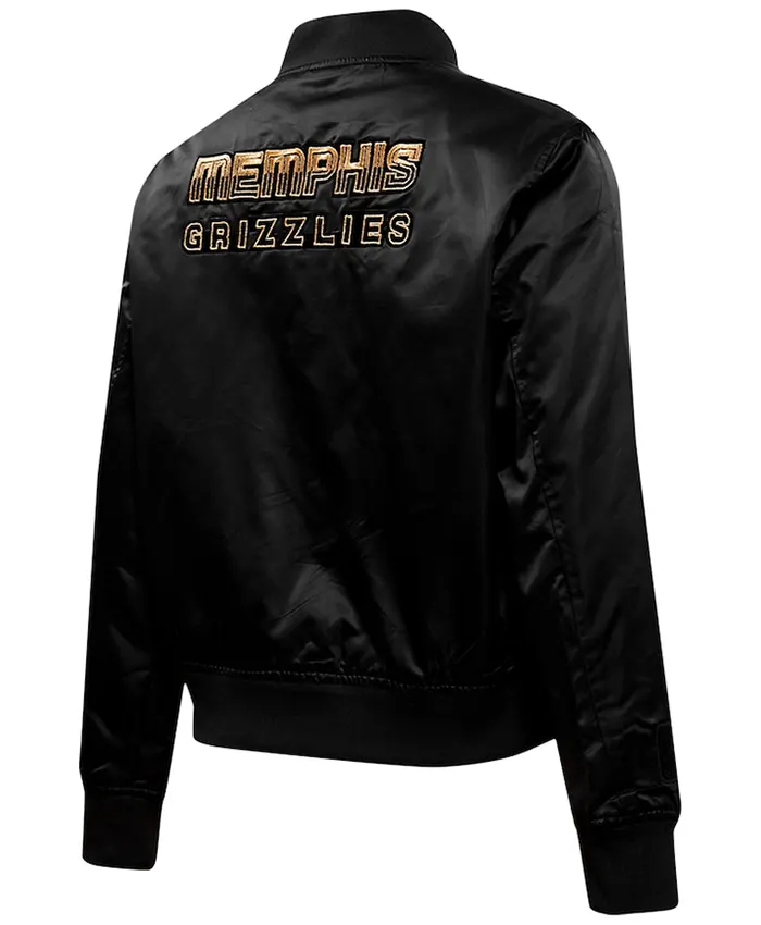 Memphis Grizzlies Black Satin Bomber Full Snap Jacket On Sale For Mens and Womens