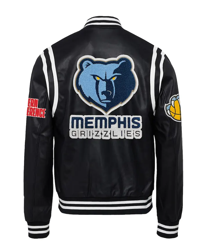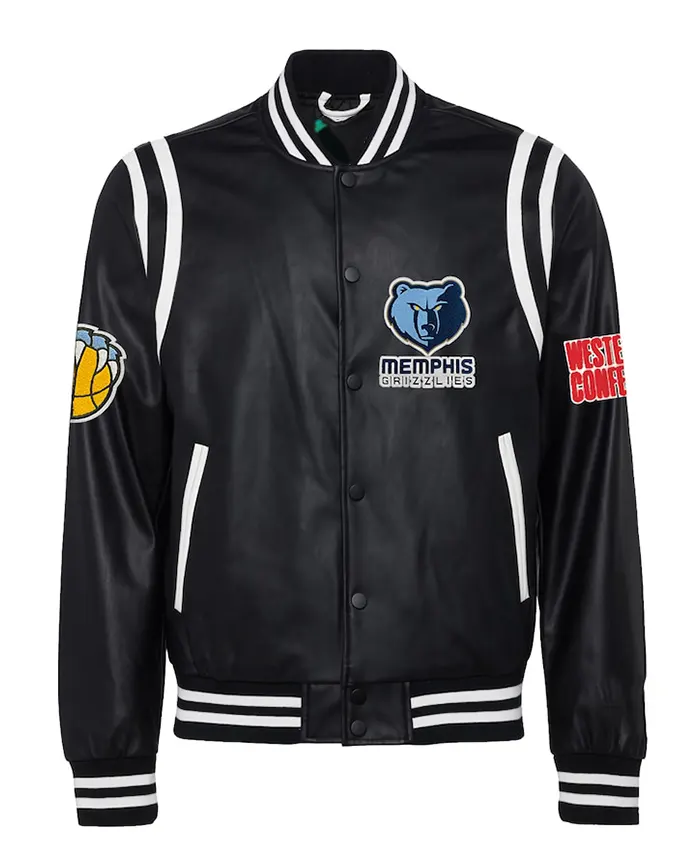 Memphis Grizzlies Black Varsity Full Snap Leather Jacket On Sale For Mens and Womens