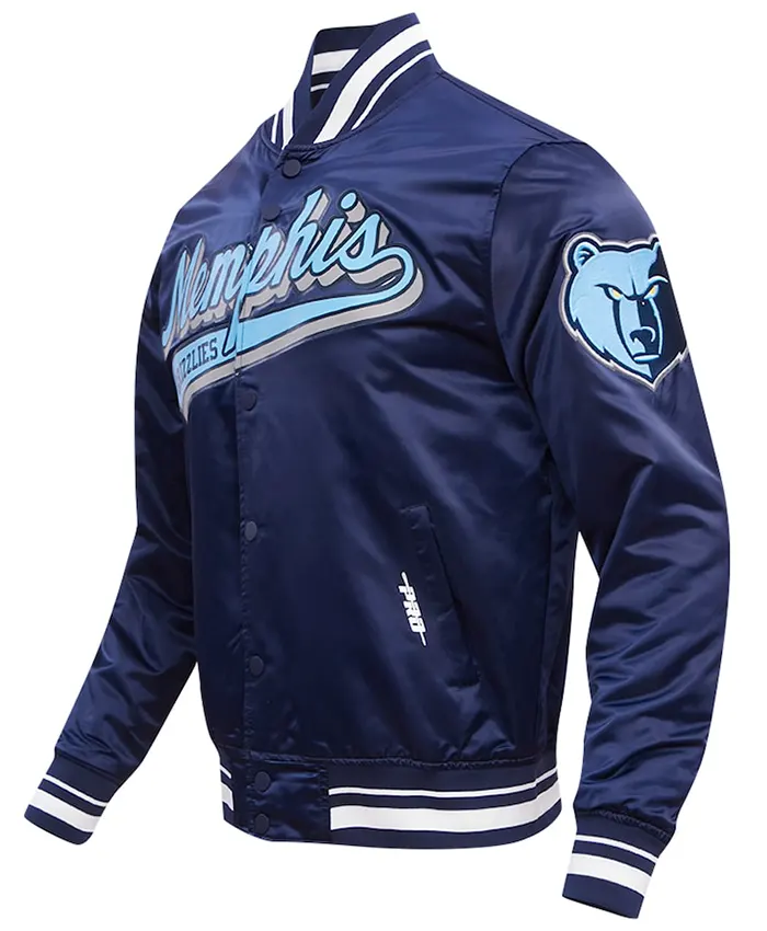 Memphis Grizzlies Navy Blue Bomber Satin Jacket For Mens and Womens on Sale