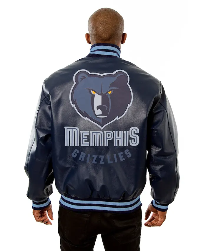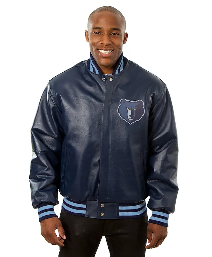 Memphis Grizzlies Navy Blue Leather Bomber Jacket For Mens and Womens on Sale