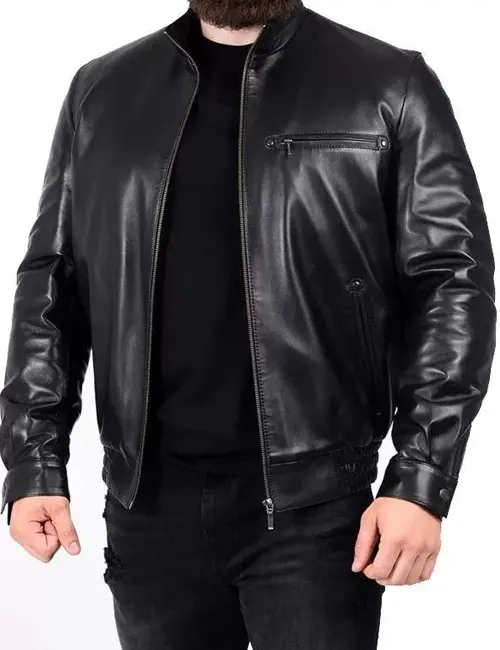 Buy Men And Women Men Black Shiny Fitted Style Real Leather Jacket For SaleÂ