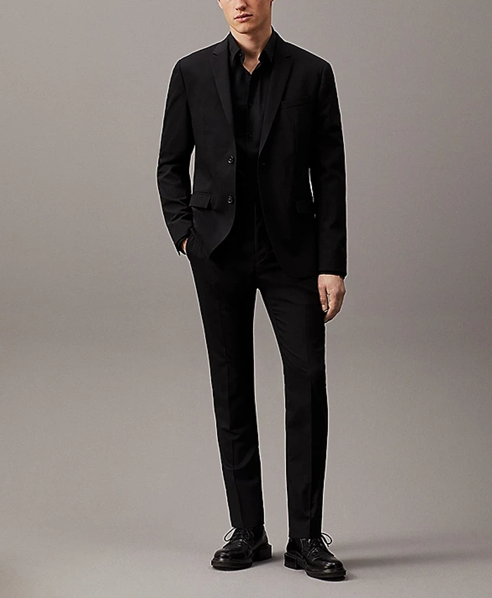 Black Slim Fit 2 Piece Shawl Lapel Suit For Parties And Events