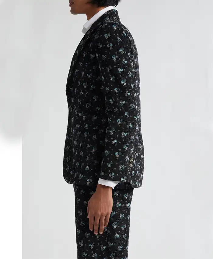 2024 Mens Stylish Floral Black Cotton Corduroy Suit Jacket