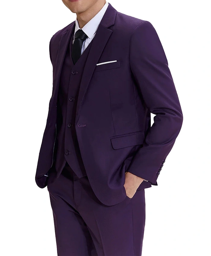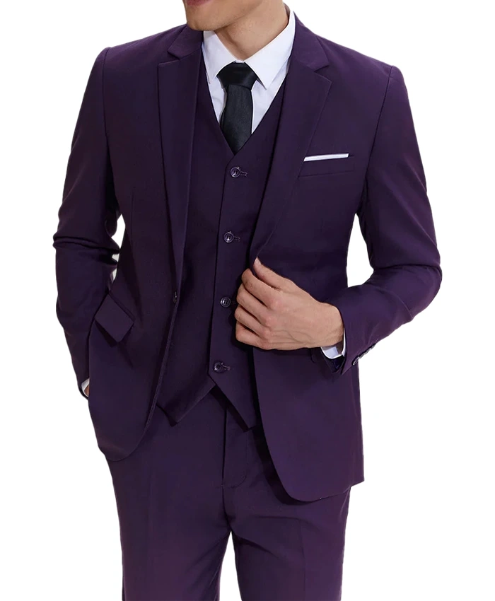 Three Piece Mens Purple Casual Slim Fit Suit For Wedding