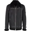 Mens Baltic Sea Shearling Fur Black B3 Bomber Genuine Leather Jacket