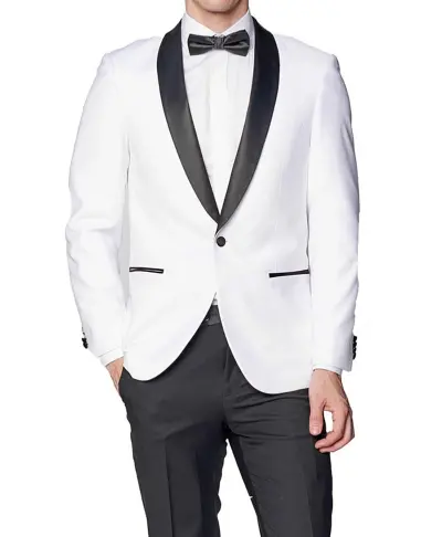 Mens Black Shawl Lapel Single Breasted White Suiting Fabric Tuxedo Suit