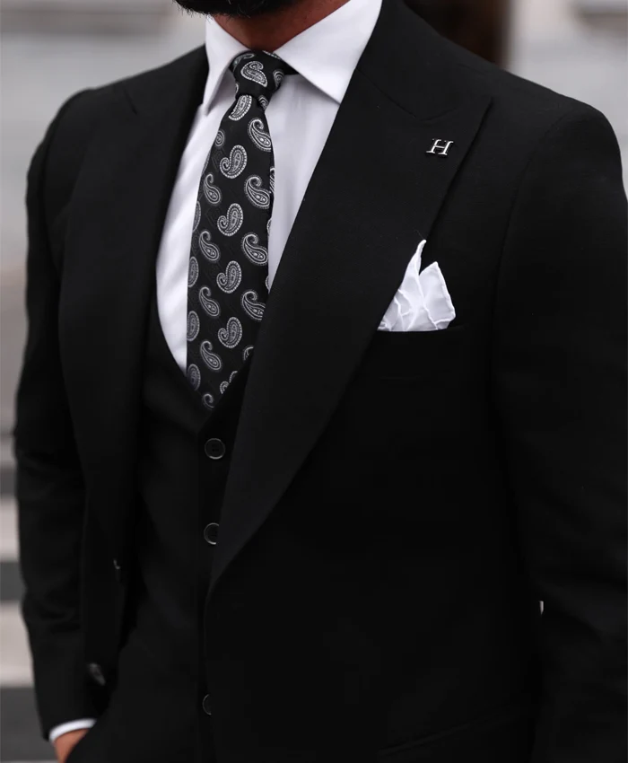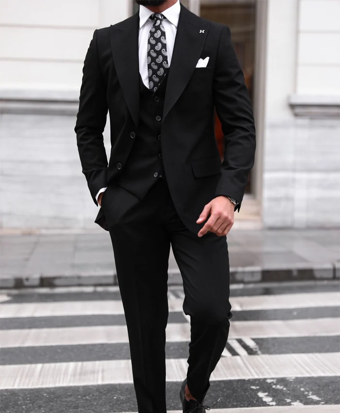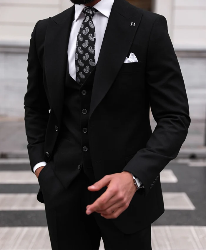Slim Fit Style 3 Piece Stylish Mens Black Formal Suit