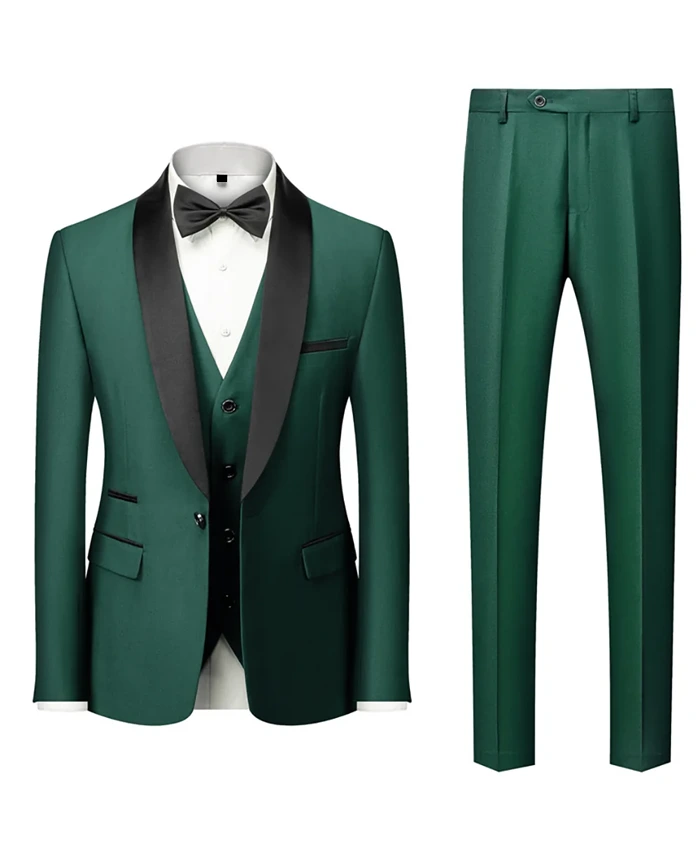 Green 3 Piece Shawl Lapel Stylish Tuxedo Suit For Wedding Mens