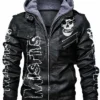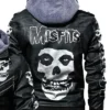 Men’s Motorcycle Misfits Black Real Leather Biker Jacket with Detachable Hood For Sale