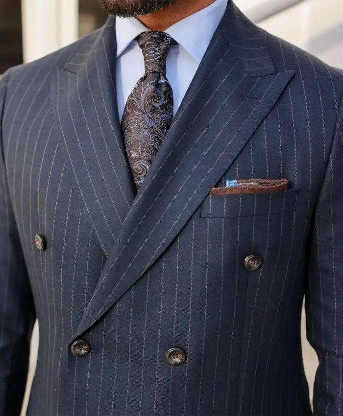 Double Breasted Navy Blue Pinstripe 2 Piece Slim Fit Suit