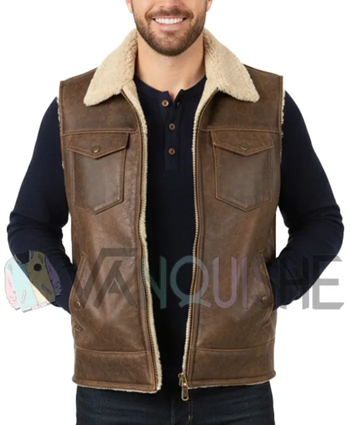 Elevate Your Look with the Stylish Men’s Sherpa Lined Leather Vest