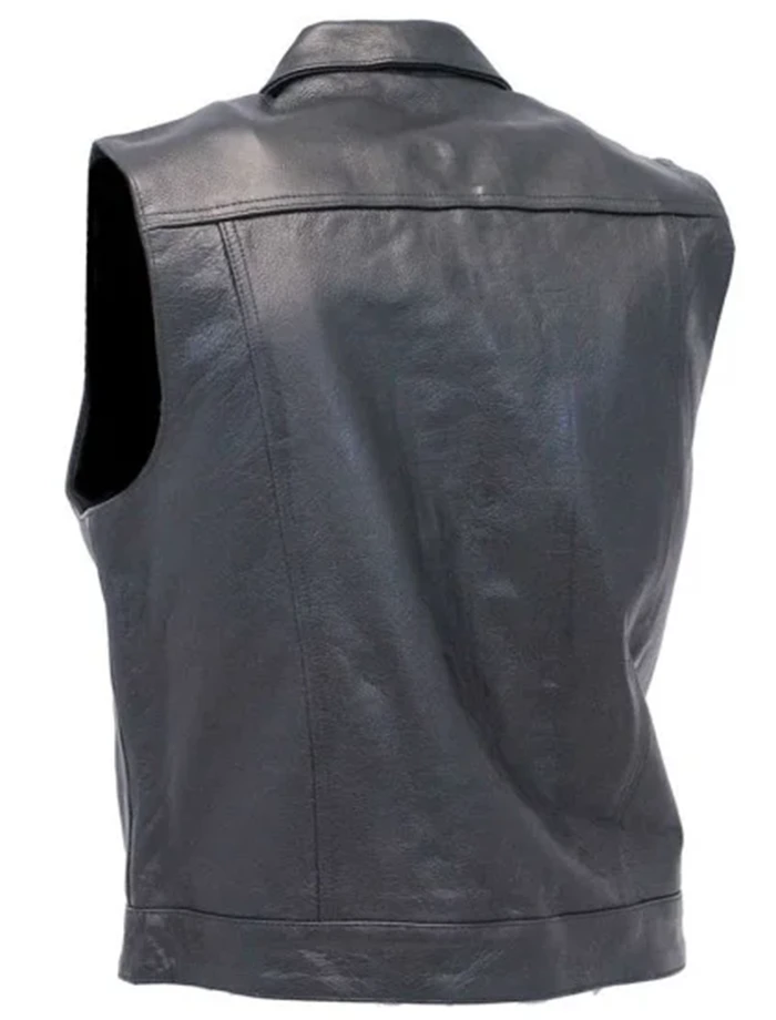 Buy Men’s Shirt Collar Denim Style Biker Club Black Leather Vest