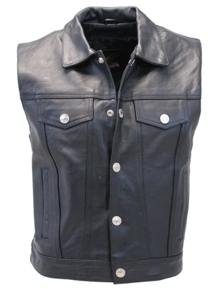 Be the first to review “Men’s Shirt Collar Denim Style Biker Club Leather Vest” Cancel reply