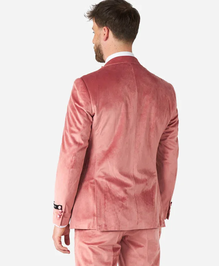 2 Piece Stylish Velvet Pink Vintage Tuxedo Suit For Mens
