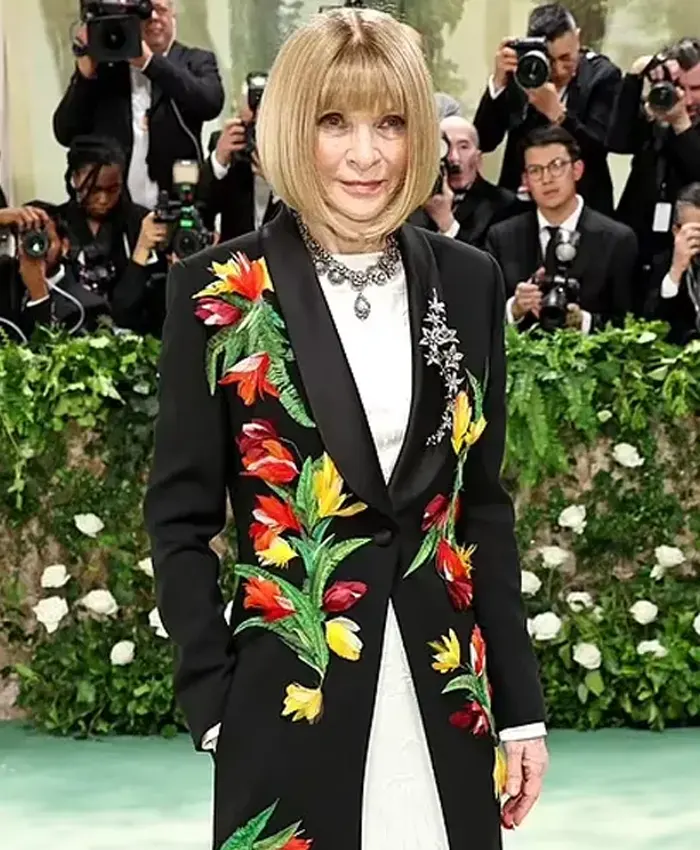 Be the first to review “Met Gala 2024 Anna Wintour Colorful Floral Long Black Coat” Cancel reply