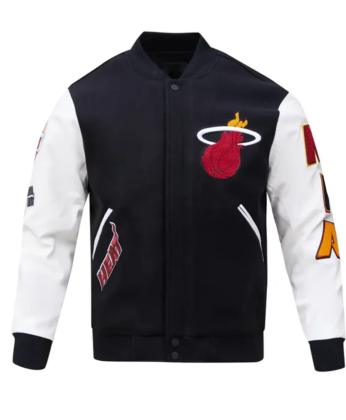 Buy Miami Heat Black And White Wool And Leather Sleeves Varsity Jacket